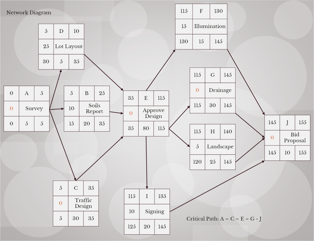 Another valuable skill I learned was how to calculate Earned Value statistics. Given limited information, we were asked to develop status reports and calculate cost variance, cost performance index and percent complete index budgeted costs.