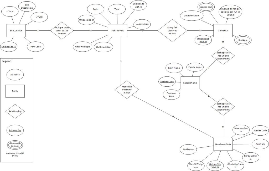 To do this I used Microsoft Access to review the relationship map of the data provided, then created a new relational database in pgAdmin based on that structure. I imported the CSV files to pgAdmin, defined tables, then created custom views using SQL queries. Once the data was organized, I created an SDE database using ArcPro and imported feature classes containing culture data, as well as the data tables and views I created.